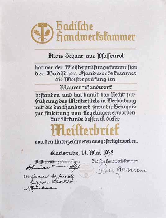 1938 trat Alois Schaar in die Fußstapfen seines Onkels und ließ sich in der Carl-Benz-Straße in Pfaffenrot nieder.